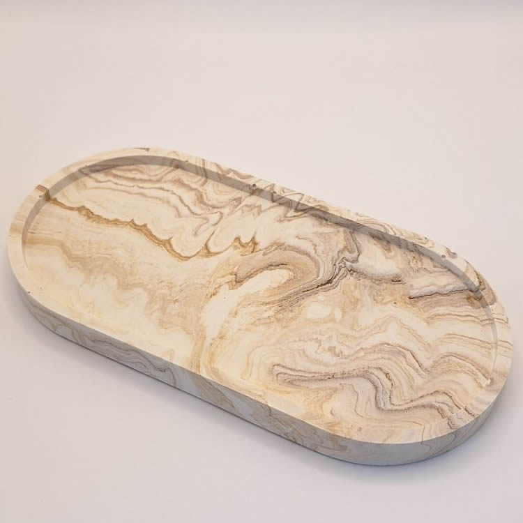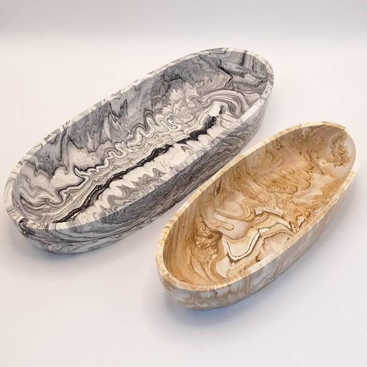 De schalen en andere decoratieve objecten zijn gemaakt van een sterk composietmateriaal. Het oogt als steen of beton, maar is lichter en milieuvriendelijker. Na de productie drogen de producten vijf dagen, waarna ze worden afgewerkt met een extra sealer voor bijkomende bescherming.